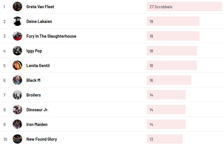 Charts 25. April 2021 andheu Allgemein charts, musik Overall artists chart Last week top artists mehr Charts
