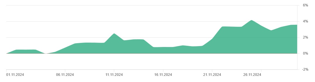 Nach dem Verlust im letzten Monat, setzt der November seinen Trend fort. In fünf von sechs Jahren endete der November mit einem ordentlichen Plus. Dieser November endet mit einem Plus von 3,54% wobei noch zwei Dividendenzahlungen ausstehen. Denn die Dividenden von Starbucks (0,58€ pro Aktie) und Games Workshop (1,02€ je Aktie) sind noch nicht eingegangen, da sie erst am gestrigen Freitag fällig waren. Games Workshop ist auch einer der Gewinner in diesem Monat mit einem Kursplus von 21,11%. Weitere Gewinner waren Hims & Hers Heath (ein Neuzugang in meinem Depot) mit einem Kursplus von 74,23%, sowie Intel 13,35% und PayPal 12,10%. Verlierer waren Sto mit Verlust von 9,51%, Deutsche Post mit Minus 6,37%, sowie Pfizer mit einem Mins von 5,37%. Neben den obligatorischen Sparplänen zu Beginn des Monats in Allianz die letzmalig angespart wurden, sowie den ETF iShares Global Corp Bond habe ich noch eine Einmalinvestition in Hims & Hers Health (WKN: US4330001060) getätigt. Dies ist ein sehr spekulatives Investment, denn es ist ein Pharmaunternehmen welches noch sehr jung ist und erst vor kurzem zum ersten mal überhaupt profitabel wurde. Es vertreibt Produkte zum Thema Haarausfall, Erektionsprobleme sowie Gewichtsreduzierung. Die Aktie ist sehr volatil ich glaube aber, dass dort sehr viel Potential steckt. Es ist aber im Gegensatz zu meinen anderen Anlagen keine stretegische Investition. Ich habe eine der schwächeren Phasen genutzt und bin Anfang des Monats bei einem Kurs von 17,50 Euro eingestiegen. Dieser Monat lief mit einem Kursplus von 74,23% natürlich super, und der Kurs ist auf 30,49€ gestiegen. Aber bei einem solchen Unternehmen kann es auch schnell wieder andersherum laufen. Mitte des Monats wurden dann noch die Sparpläne für die ETFs Amundi MSCI World und Amundi MSCI Europe ausgeführt, und auch in nächster Zeit einfach weiter geführt werden da dies ja den Kern meines Depots bildet. Dividenden gab es wie oben schon genannt am 29 November von Games Workshop und Starbucks. Anfang des Monats von ASML in Höhe von 1,52€ je Aktie. Mitte des Monats kamen dann noch Dividenden von Realty Income von 0,25€ je Aktie und Procter&Gamble in Höhe von 0,95€ je Aktie. Da der Sparplan von Allianz ja seine Zielsumme erreicht hat, wird dieser pausiert und ab nächsten Monat startet dann ein neues Sparplan.