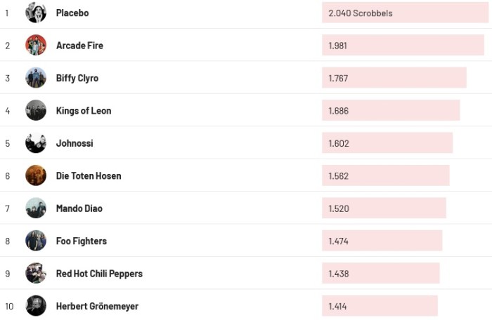 Charts 10. August 202514. August 2025 andheu Allgemein charts, musik Overall artists chart Last week top artists mehr Charts