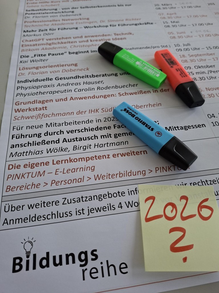 Im Unternehmen gibt es die Möglichkeit an einer Bildungsreihe teilzunehmen. Das gibt es schon seit Jahren, und gegen Ende 2025 wurden die Themen für 2026 veröffentlicht. Daran kann grundsätzlich jeder Mitarbeiter teilnehmen wenn es für ihn „relevant“ ist, und es findet in der Arbeitszeit statt. Man kann an bis zu zwei Veranstaltungen im Jahr teilnehmen und kurzen Terminen die eine halbe Stunde dauern, bis hin zu ganztägige Veranstaltungen. Bisher habe ich nicht an so etwas teilgenommen, doch für 2026 möchte ich die Möglichkeit mal nutzen. Denn es gibt tatsächlich jedes Jahr einige wirklich spannende Veranstaltungen. Und wenn es nur ein Erste Hilfe Kurs ist um seine Kenntnisse aufzufrischen.