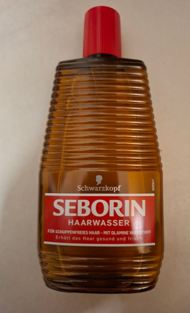 Dabei handelt es sich um Seborin von Schwarzkopf, welches es schon seit 1934 unverändert am Markt gibt. Im Unterschied zu den Hair Tonics merkt man, dass solche Produkte in Deutschland eher als medizinisches Produkt denn als Kosmetik galten, und daher früher in Apotheken vertrieben wurden. Daher auch diese doch eher unscheinbare Verpackung die sich seit 1934 auch nur unwesentlich geändert hat. Ich nutze Seborin vor allem, da der blumige Duft von Sweet Georgia Brown zwar einzigartig ist, aber ich muss ihn auch nicht jeden Tag haben. Seborin dagegen duftet einfach zitrisch frisch und ist einfach neutraler. Die Wirkung beider Haarwasser ist aber der Gleiche.