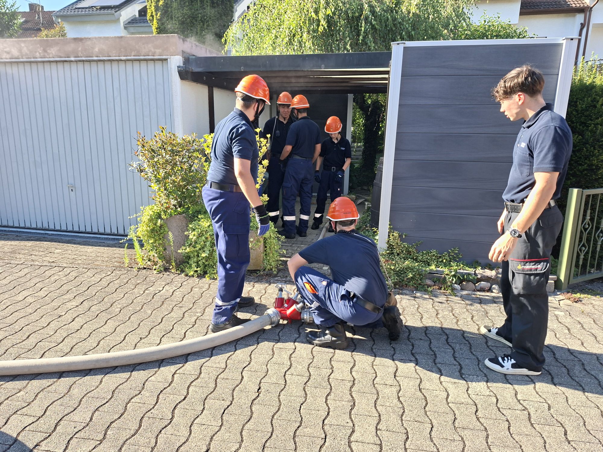 Gestern hatte unsere Jugendfeuerwehr ihre Sommerabschlußübung, noch ein kleines Highlight bevor es dann bald in die Sommerferien geht. Die Verantwortlichen haben sich diesmal etwas Besonderes überlegt und es war nicht eine große Übung, sondern bestand aus mehreren Teilen. Der erste Teil war eine Eisnatzübung die eigentlich für die Einsatzabteilung gedacht ist. Dabei ging es um einen Garagenbrand mit Maydaymeldung. Das ist selbstverständlich deutlich über den Niveau der Jugendfeuerwehr die ja auch kein Atemschutz nutzt. Aber es sollte mal zeigen was alles so auf sie zukommt und was Feuerwehr noch zu bieten hat. So ging es auch nicht darum, dass alles perfekt oder schnell ausgeführt wurde, sondern die ausbilder haben die Schritte die zu tun sind erklärt, und bei der Nachbesprechnung dann aufgezeigt wie solche Einsätze abgearbeitet werden. Und vor allem wurde dann aufgezeigt warum in der Jugendfeuerwehr auch auf gewisse Dinge geachtet werden die dort jetzt nicht so tragisch sind, bei der Einsatzabteilung im Einsatz aber sehr wichtig sind (Trupps trennen sich niemals). Es war also eher eine Übung um die Perspektiven in der Zukunft zu zeigen. Der zweite teil war dann noch einmal die Schauübung für das Sommerfest so zu üben wie es dann auch stattfindet. Also mit den entsprechenden Fahrzeugen, am richtigen Übungsort.