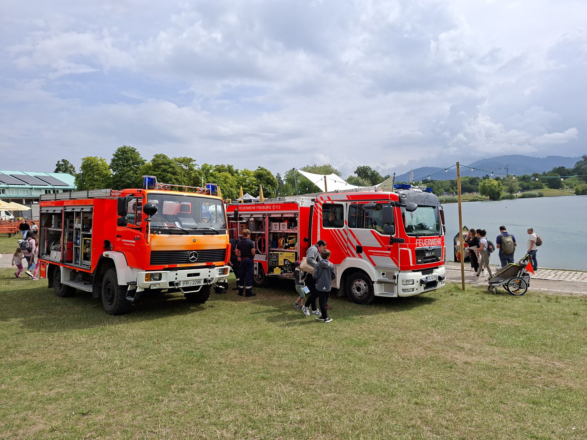 An diesem Wochenende war wieder alles auf einmal. Neben dem Seefest gab es noch das Stadtteilfest im Rieselfeld, sowie drei Feuerwehrfeste. Zum einen das große Fest in der Wiehre, sowie den Hock in Opfingen wie auch das Sommerfest unserer Abeilung. Und genau dann hat der große Regen eingesetzt… Für das Sommerfest unserer Abteilung habe ich mich abgemeldet, da ich am Donnerstag bis 18 Uhr gearbeitet habe, und am Freitag und Samstag dann jeweil einen Frühdienst hatte. Da es eine sechs Tage Woche war, war mein einziger freier Tag der Sonntag. Und den habe ich dann beim Seefest verbracht. Dort waren wir auch mit unserer Abteilung oder besser gesagt mit der Jugendfeuerwehr unserer Abteilung. Und so war ich dort von 9:30 Uhr bis 19:30 Uhr eingebunden. Wir haben dort wie jedes Jahr eine Station der Kinderolympiade gestellt. Dort konnten sich die Kleinen dann an der Löschwand versuchen. Aber natürlich konnte man sich auch wieder ins Fahrzeug setzen und auch sonst alles erklären lassen. Ist irgendwie immer ganz witzig wenn Vater oder Mutter ihrem nachwuch erklären was da so alles auf dem Fahrzeug ist und wie es funktioniert. Auch wenn das teilweise doch sehr lustig ist und Wassrsauger zu Agregaten mutieren…. Was auch häufiger vorkommt und echt lustig ist. Wenn Vater oder Mutter etwas wissen wollen und dann das Kind vorschicken um zu fragen. Dabei ist es wirklich kein Ding und wir erklären auch gerne Erwachsenen was und wie etwas abläuft oder funktioniert. Und natürlich dürfen sich auch die Erwachsenen gerne mal hineinsetzen und sich das Fahrzeug von innen anschauen. Bis zum Nachmittag hielt sich das Wetter auch ganz gut, doch dann setzte erneut der ausgiebige Regen ein. So gegen 17 Uhr wollten wir dann auch unsere Sachen zusammenpacken, doch wir mussten dann noch bis viertel vor sechs warten bis der GW kam mit dem wir die Tragkraftspritze und die Löschwand transportieren mussten. Und so zog sich alles hin. Schließlich musten dann noch die Fahrzeuge uind die TS getankt und gereinigt, sowie alles wieder verstaut werden. Und damit war dann mein Wochenende auch schon wieder vorbei.