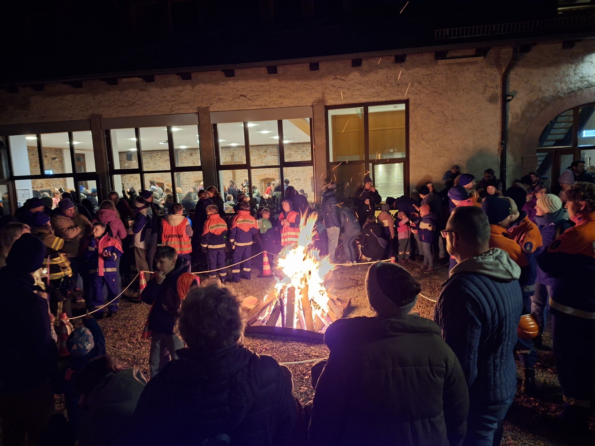Am Montag hat der örtliche Kindergarten seinen St.Martinsumzug durch die Ortschaft gemacht. Und nach einigen Jahren der Pause, hat der Kindergarten jetzt wieder angefragt ob wir mit der Jugendfeuerwehr ein Martinsfeuer machen und beaufsichtigen können. Das haben wir mit Freude gemacht, und so sind wir um 17 Uhr zur Kirche gekommen und haben dort ein St.martinsfeuer entfacht, während die Kinder und Eltern mit ihren Laternen durchs Dorf gezogen sind. Als sie dann ankamen brannte das Feuer ordentlich und e wurde noch ein letztes Lied gesungen, und eine kurze Rede gehalten. Während die Kinder vom Feuer begeistert waren gab es auch Glühwein, Tee, Brezeln, Weckmänner dessen Erlös dem Kindergarten zugute kommt. Die Jugendlichen der Jugendfeuerwehr haben aufgepasst, dass keine Kinder zu nahe an das Feuer kommen, und nach Abschluss der Veranstaltungen durften sie es auch löschen. So hatten schlußendlich alle ihren Spaß, und die veranstaltung war ein Erfolg. Zudem konnte sich die Jugendfeuerwehr auch mal wieder im Ort präsentieren.
