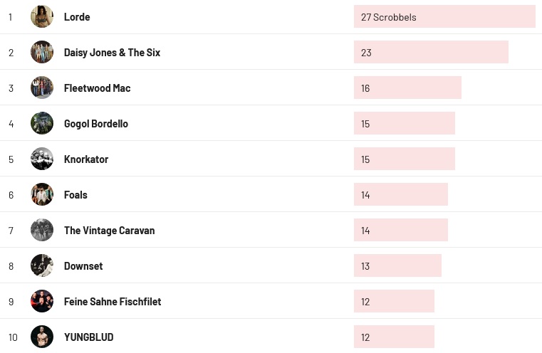 Charts 10. August 202514. August 2025 andheu Allgemein charts, musik Overall artists chart Last week top artists mehr Charts