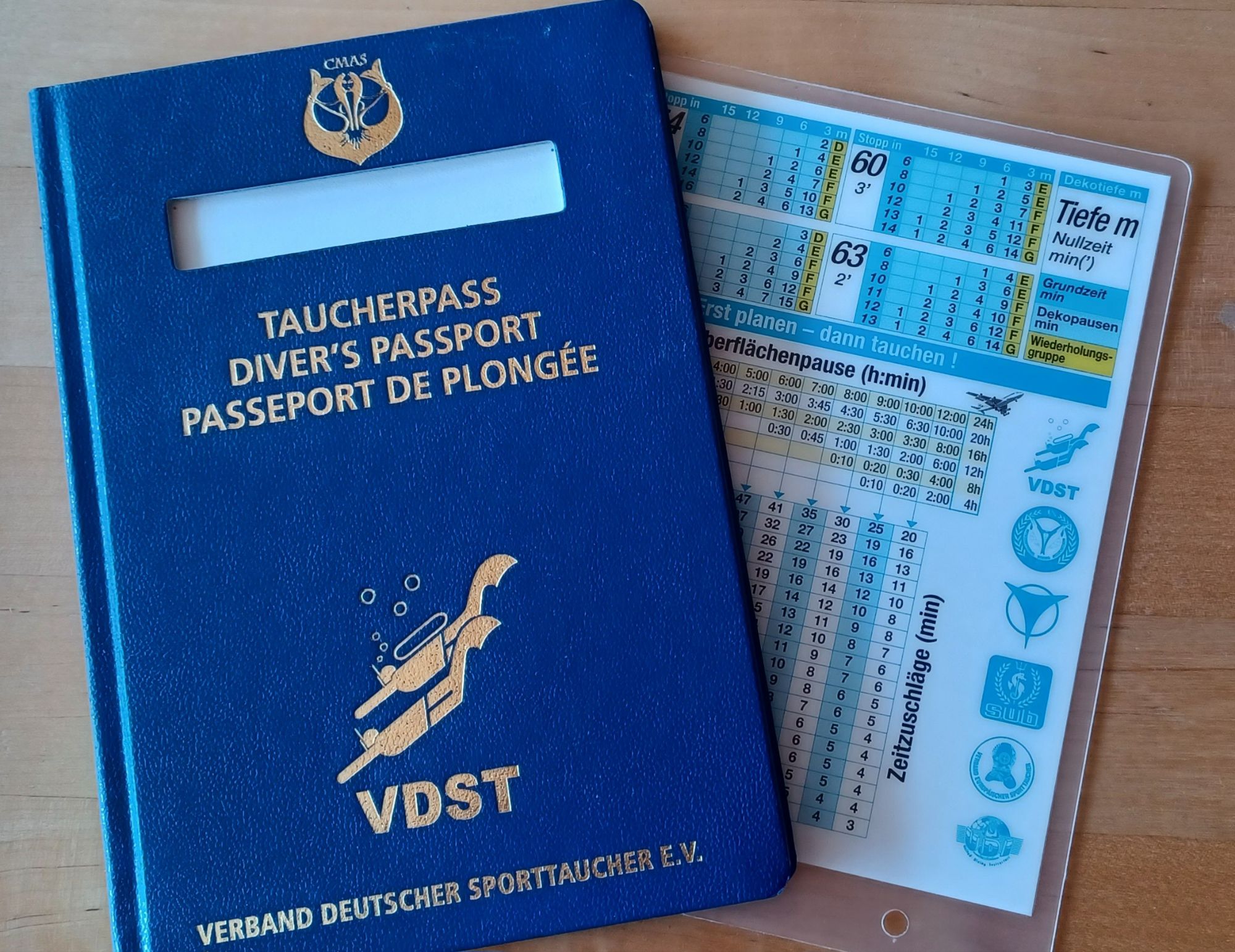 Am Montag fand wieder der Stammtisch vom Tauchclub statt. Normalerweise findet dieser in einem Lokal nach dem Training statt. Da das Schwimmbad und auch das Lokal derzeit geschlossen sind, kam die Idee auf den Stammtisch ins Vereinsheim zu verlegen. Das war früher wohl immer so, was eigentlich auch logisch ist da das Vereinsheim wirklich toll ist. Am Montag fand es also im Vereinsheim statt und wir haben gemütlich gegrillt und hatten einen netten Abend. Und da auch ein Vorsitzender da war, konnte ich ihn auch gleich ansprechen da ich ja den Tauchpass und eine Decotabelle nicht bekommen habe. Und so konnte er ihn mir gleich geben. Ist irgendwie ganz witzig. Für meinen Tauchschein bei Padi habe ich einfach eine Karte bekommen. Bei diesem System bekommt man jetzt für jeden Lehrgang eine Karte vom VDST, eine von CMAS, sowie ein Brevet um dieses in den Taucherpass zu kleben.